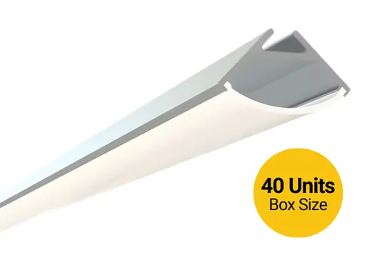 The SL-214-S-94 is a surface mount aluminum channel that mounts in a corner. It includes a channel, lens, end caps, mounting clips. Available in 94″ sections.